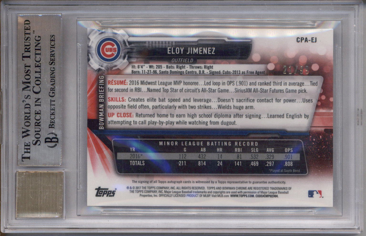 2017 Bowman Chrome Prospect Auto Green Refractors Eloy Jimenez RC /99 BGS 9.5