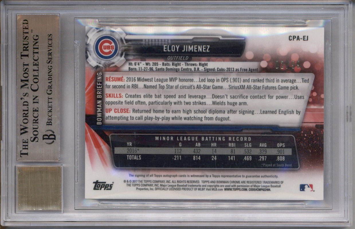 2017 Bowman Chrome Prospect Auto Green Refractors Eloy Jimenez RC /99 BGS 9.5