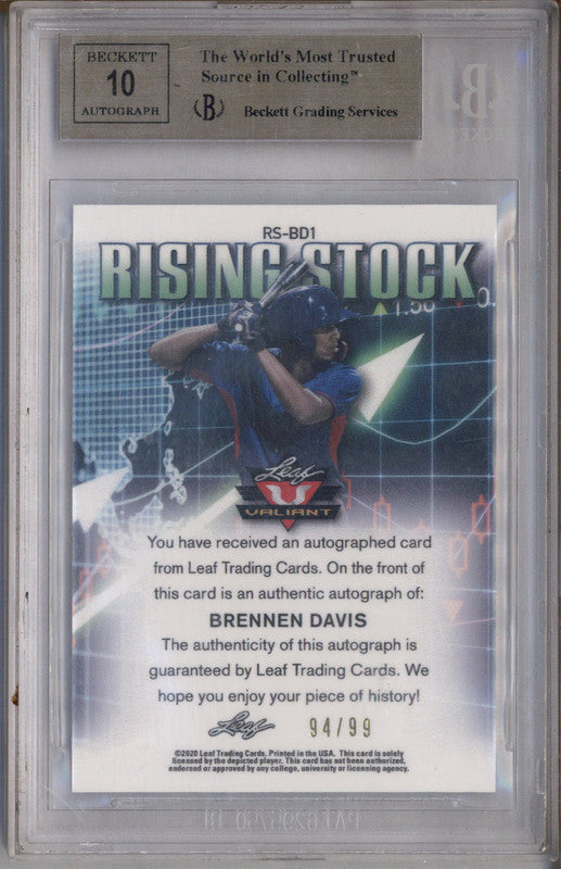 2020 Leaf Valiant Rising Stock Green #RSBD1 Brennen Davis Auto /99 BGS 9.5