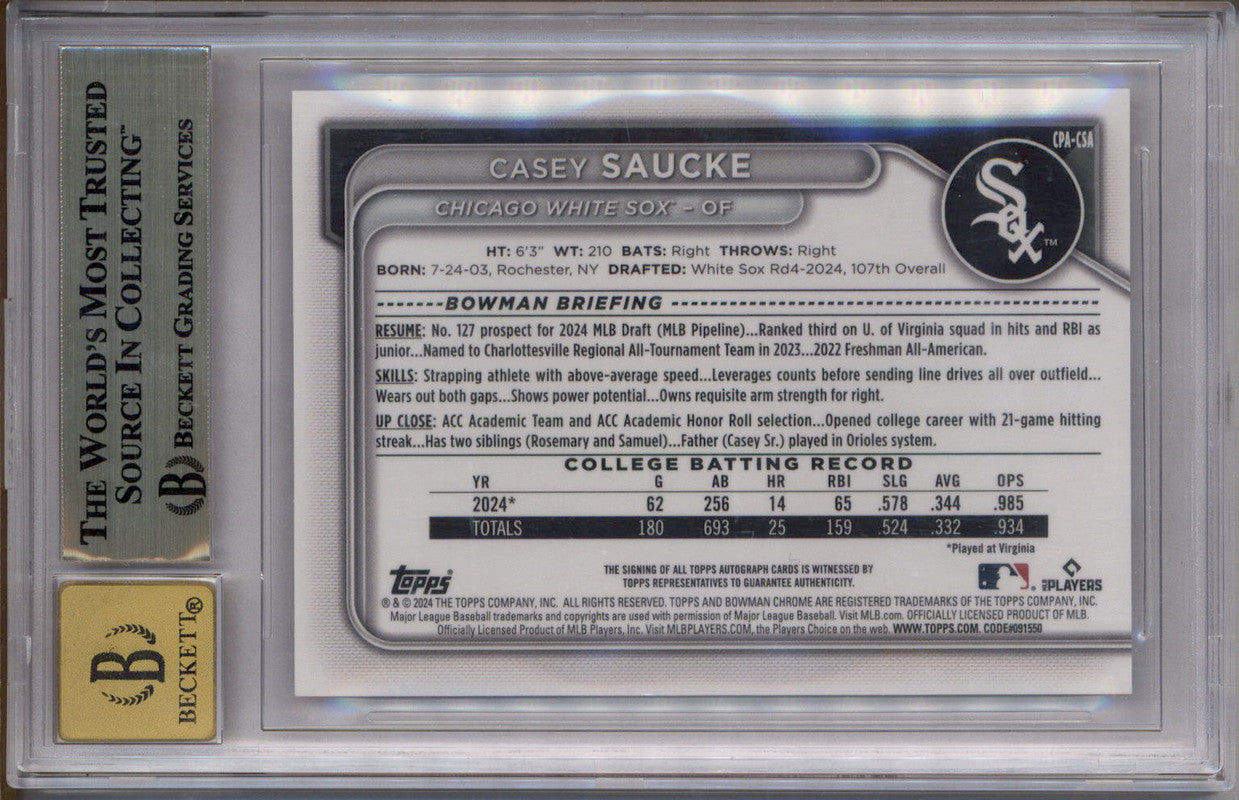 2024 Bowman Chrome Draft Auto Gold Shimmer Refractor Casey Saucke RC /50 BGS 9.5