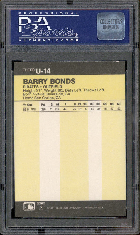 1986 Fleer Update #U-14 Barry Bonds RC PSA 8