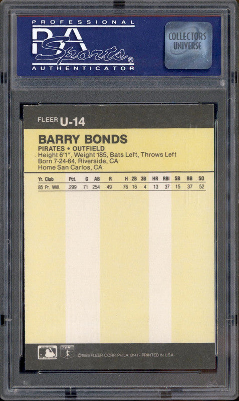 1986 Fleer Update #U-14 Barry Bonds RC PSA 8