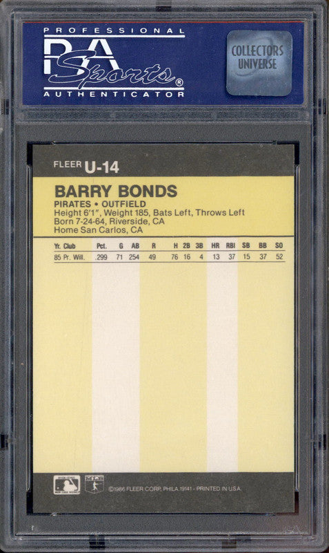 1986 Fleer Update #U-14 Barry Bonds RC PSA 8