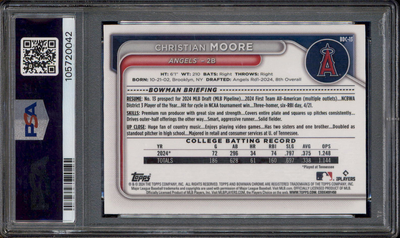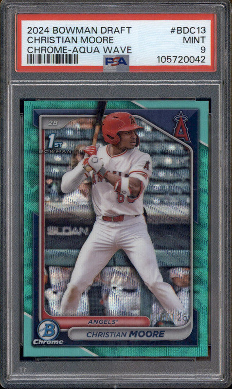 2024 Bowman Draft Chrome Aqua Wave #BDC13 Christian Moore RC /125 PSA 9
