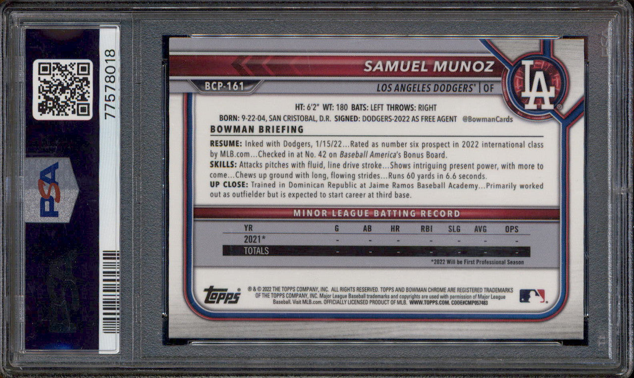 2022 Bowman Chrome Sapphire Edition Prospects #BCP161 Samuel Munoz RC PSA 10
