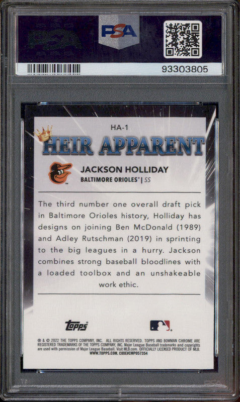 2022 Bowman Draft Heir Apparent #HA1 Jackson Holliday PSA 10
