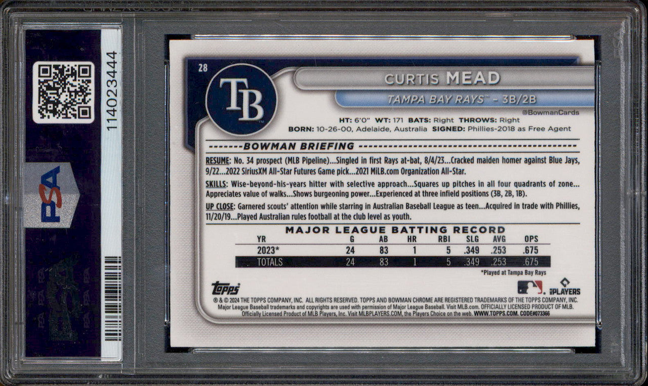 2024 Bowman Mega Box Chrome Gold Refractor #28 Curtis Mead RC /50 PSA 10