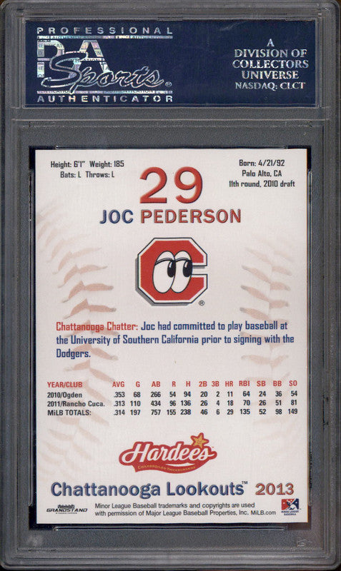2013 Grandstand Chattanooga Lookouts Joc Pederson PSA 10