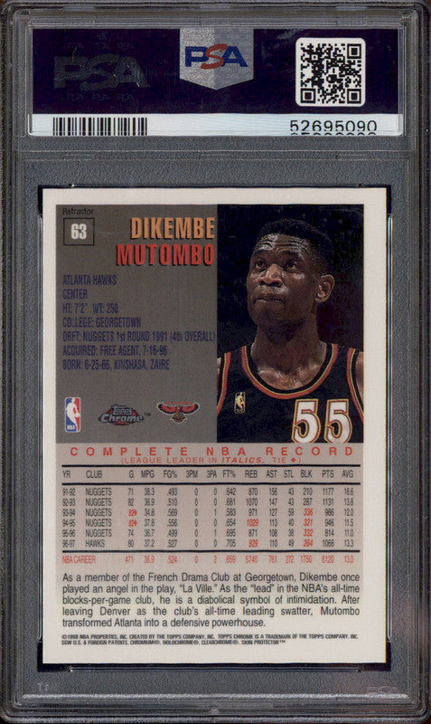 1997 Topps Chrome Refractor #63 Dikembe Mutombo PSA 9