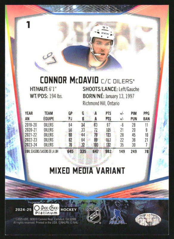 2024-25 O-Pee-Chee Platinum Mixed Media Variations #1 Connor McDavid SP