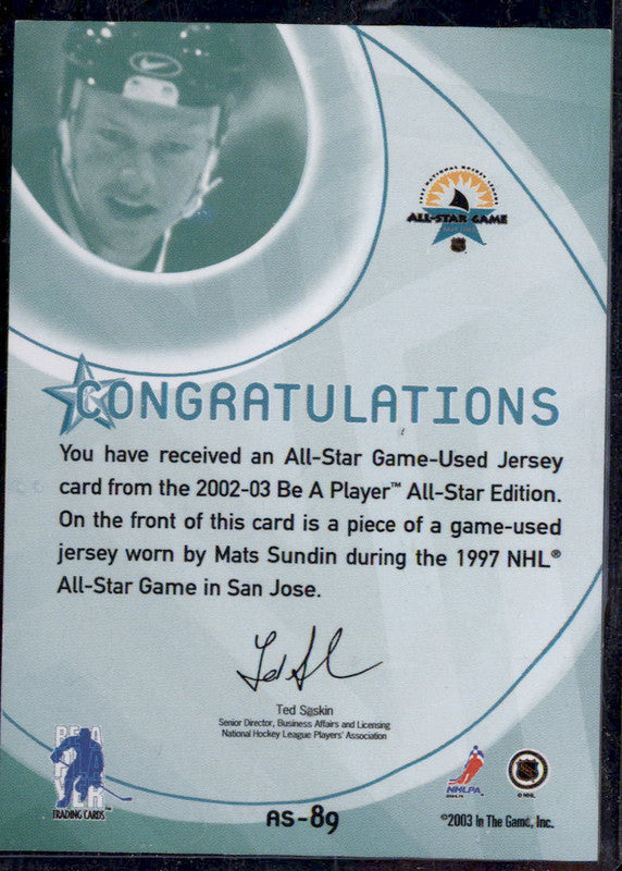 2003 In The Game BAP All Star Edition Jersey #AS-89 Mats Sundin 1/1