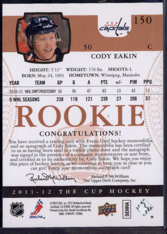 2011-12 The Cup Gold #150 Cody Eakin Rookie Patch Auto Autograph RC Auto /50