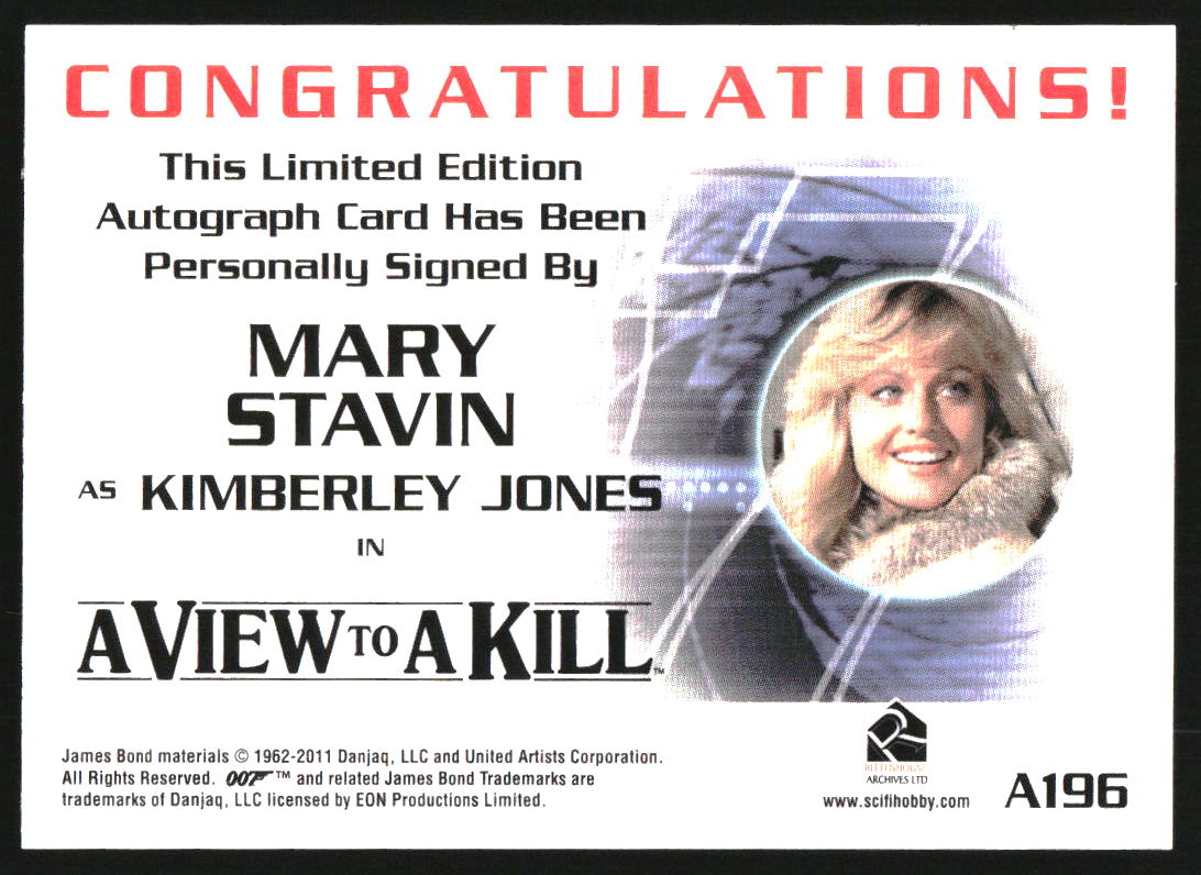 2012 Rittenhouse James Bond 50th Anniversary Autographs #A196 Mary Stavin Auto