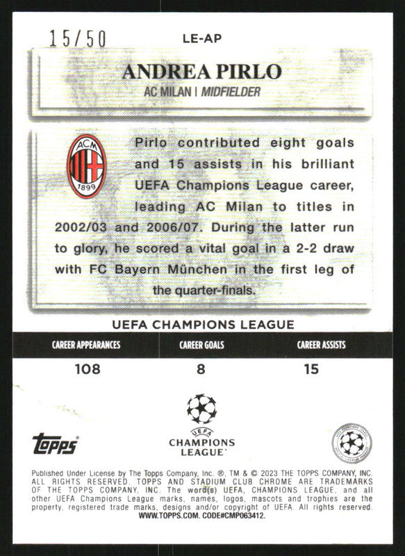 2022 Stadium Club Chrome UEFA Legends of Europe Gold Refractors Andrea Pirlo /50