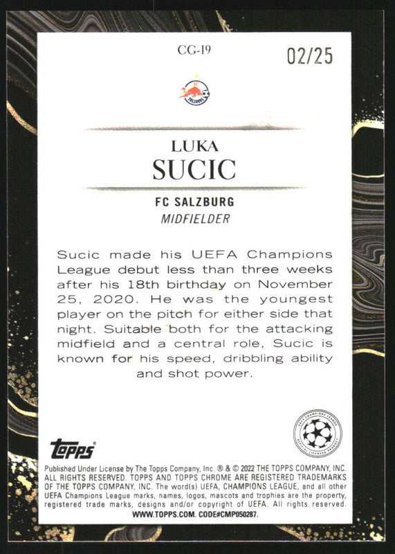 2021 Topps Chrome Champions Chasing Glory Orange Refractors Luka Sucic RC /25
