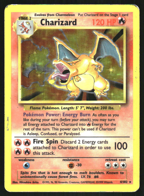 1999 Pokemon Set Unlimited #4/102 Charizard Rare Holo *MP