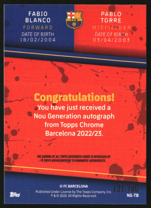 2023 Topps Chrome Nou Generation Dual Auto Pablo Torre Fabio Blanco RC /150