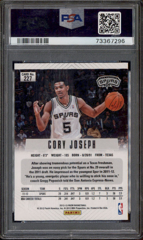 2012-13 Panini Prizm Prizms #227 Cory Joseph RC PSA 10