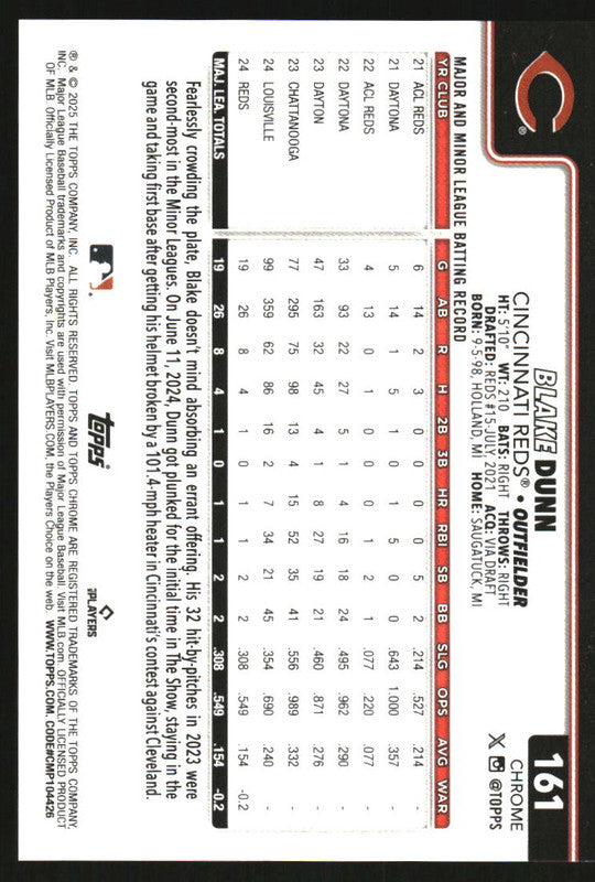 2025 Topps Chrome Orange Lava Refractor #161 Blake Dunn RC /25