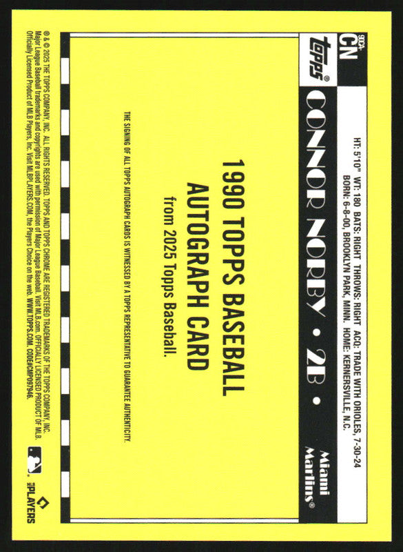 2025 Topps 1990 Baseball Chrome Silver Pack Auto #90CA-CN Connor Norby RC /299