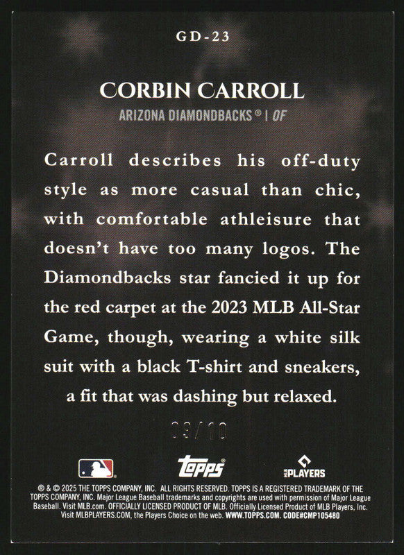 2025 Topps Gameday Drip Black #GD-23 Corbin Carroll /10