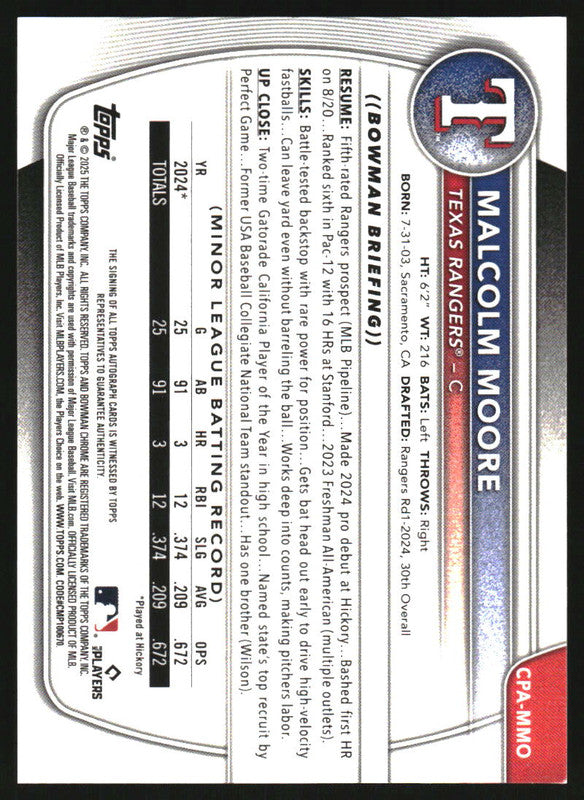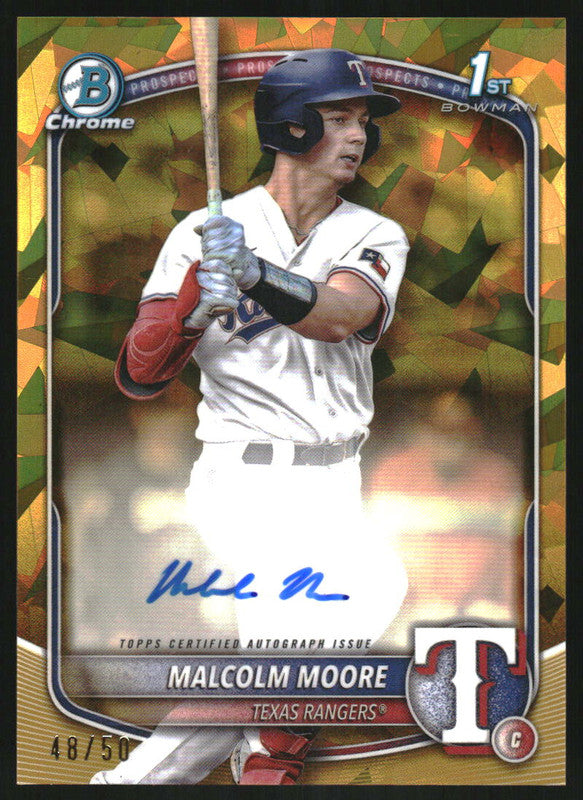 2025 Bowman Sapphire Chrome Gold Refractors #CPS-MMO Malcolm Moore RC Auto /50
