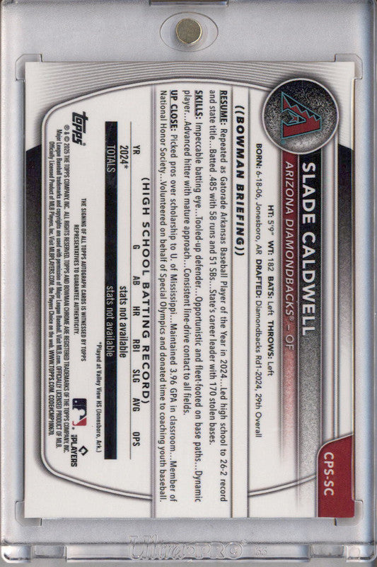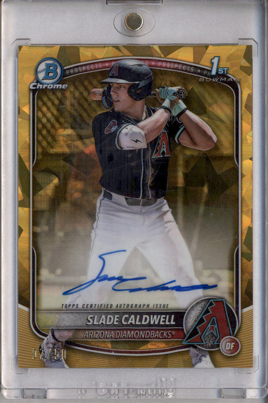 2025 Bowman Sapphire Chrome Autographs Gold #CPS-SC Slade Caldwell RC Auto /50