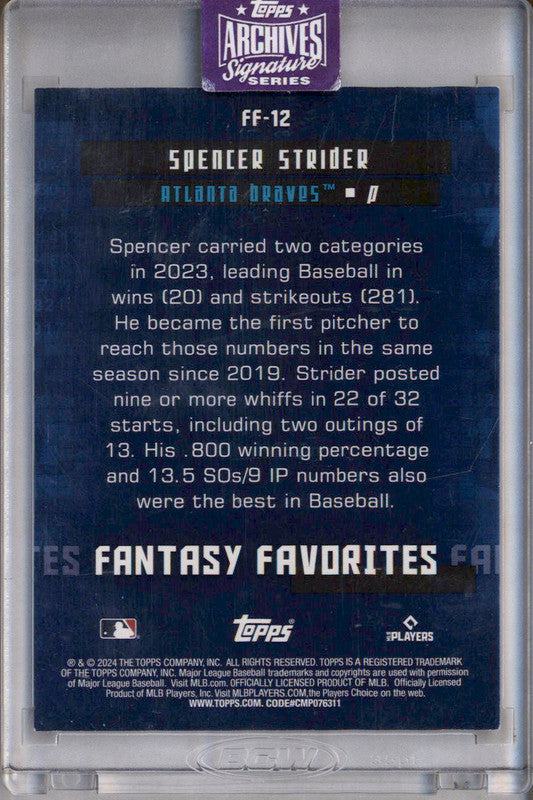 2025 Topps Archives Signature Series Autograoh Spencer Strider Auto 1/1