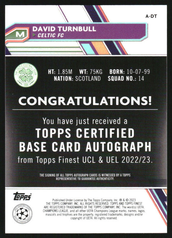 2022-23 Topps Finest Autograph Gold David Turnbull Auto /50