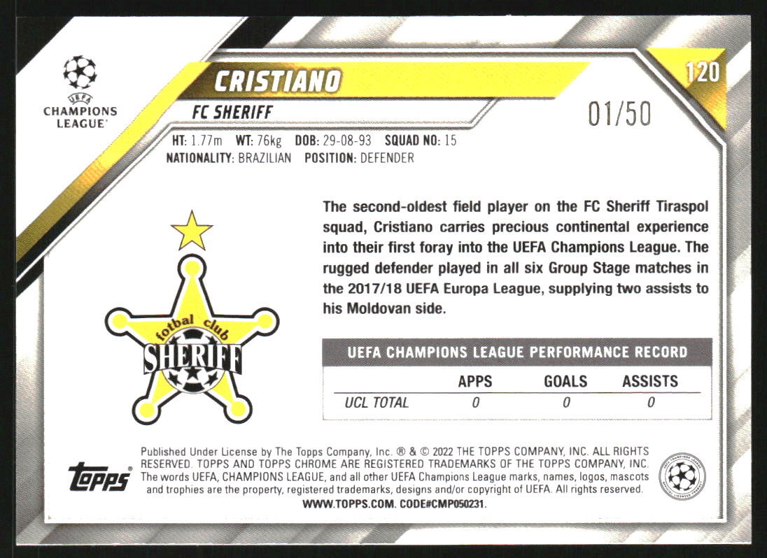 2021 Topps Chrome UEFA Champions League Gold Refractors #120 Cristiano RC /50