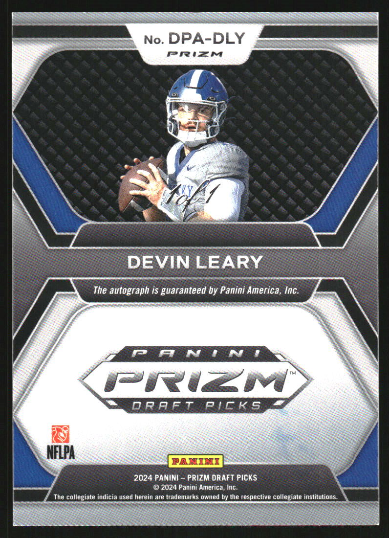 2024 Panini Prizm Collegiate Draft Black Shimmer #DPADLY Devin Leary RC Auto 1/1