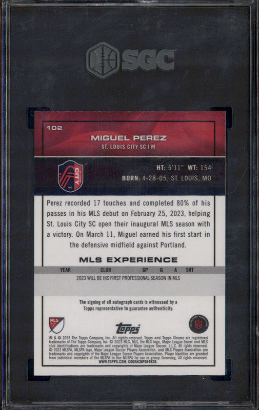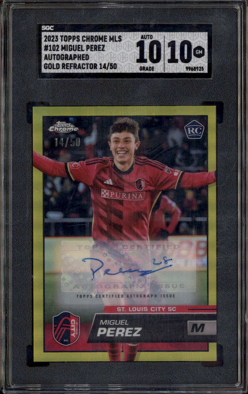 2023 Topps Chrome MLS Autograph Gold Refractor #102 Miguel Perez Auto /50 SGC 10