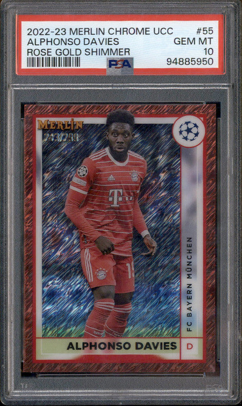 2022 Topps Merlin Chrome Rose Gold Shimmer #55 Alphonso Davies /299 PSA 10