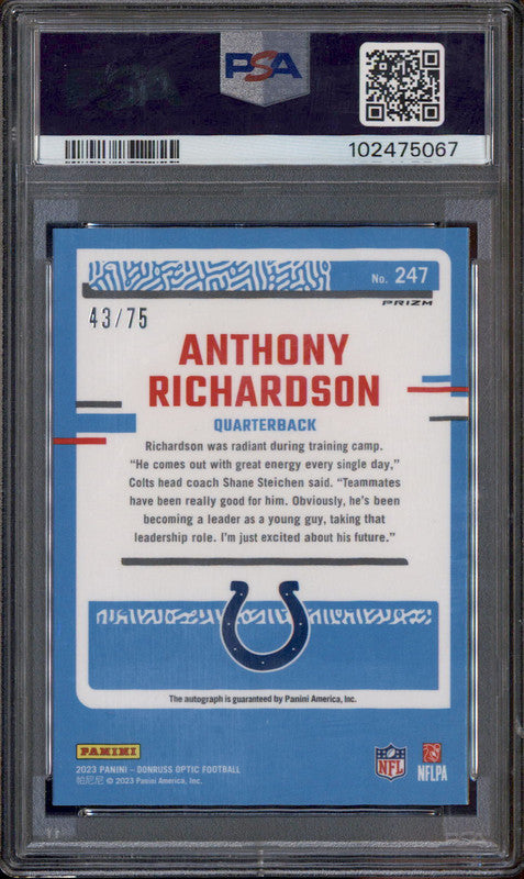 2023 Donruss Optic Rookie Autograph Red Anthony Richardson RC Auto /75 PSA 9