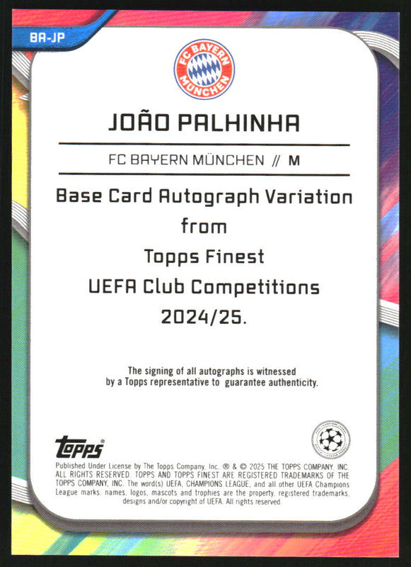 2024-25 Topps Finest UEFA Gold Refractor #BA-JP Joao Palhinha Autograph Auto /50