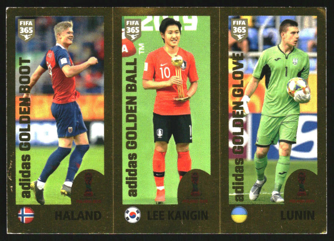 2020 Panini FIFA 365 Stickers 442 #421 Awards Haland Lee Kangin Lunin Gold