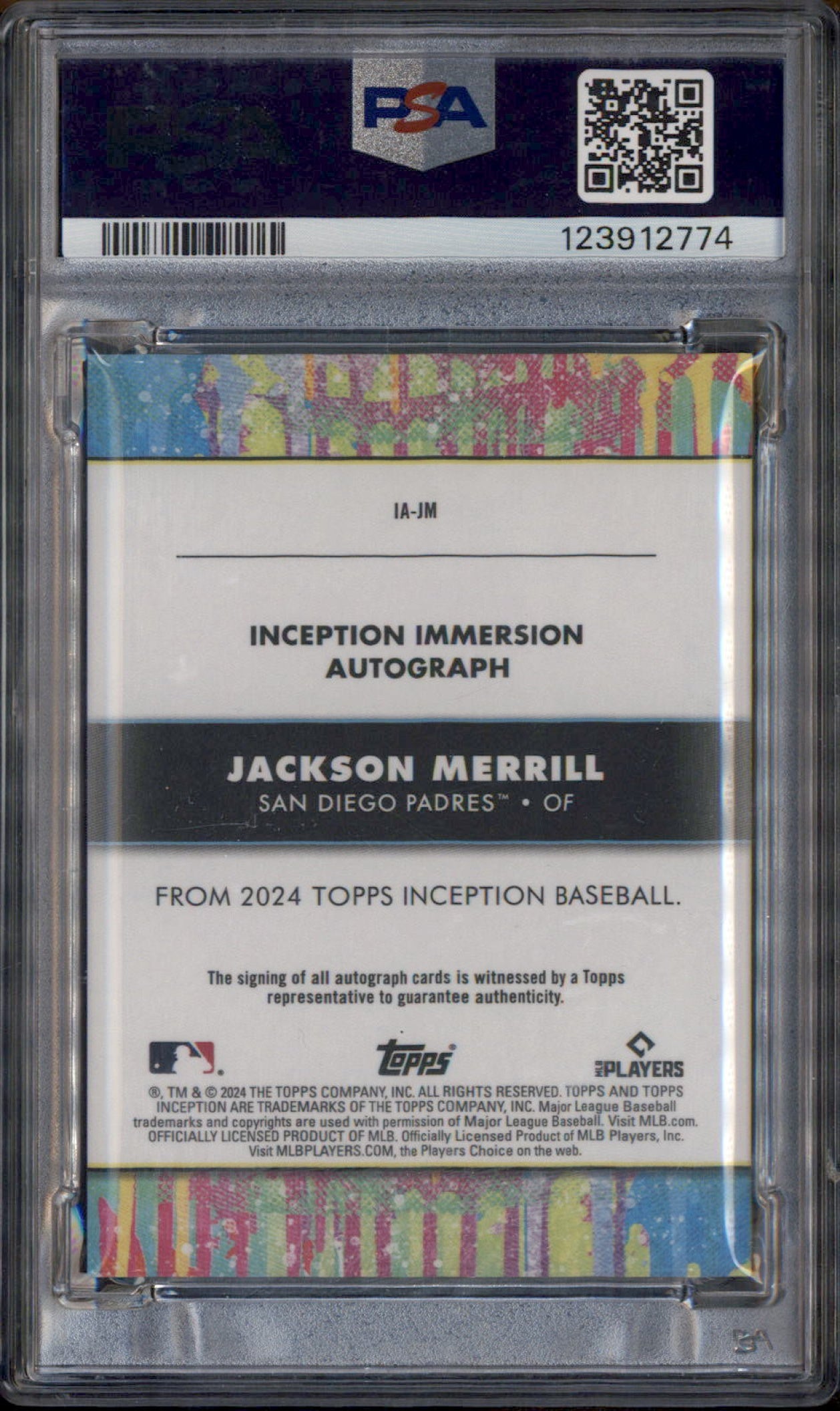2024 Topps Inception Immersion Autograph Jackson Merrill RC Auto /100 PSA 7
