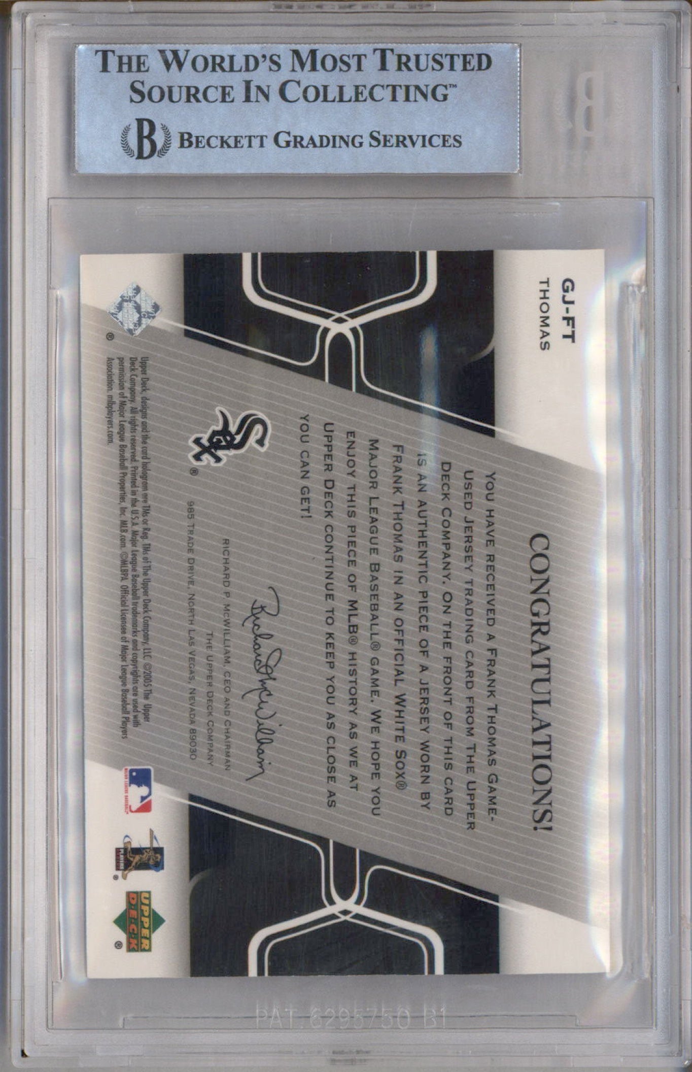 2005 Upper Deck UD Game Jerseys #GJ-FT Frank Thomas BGS 8.5
