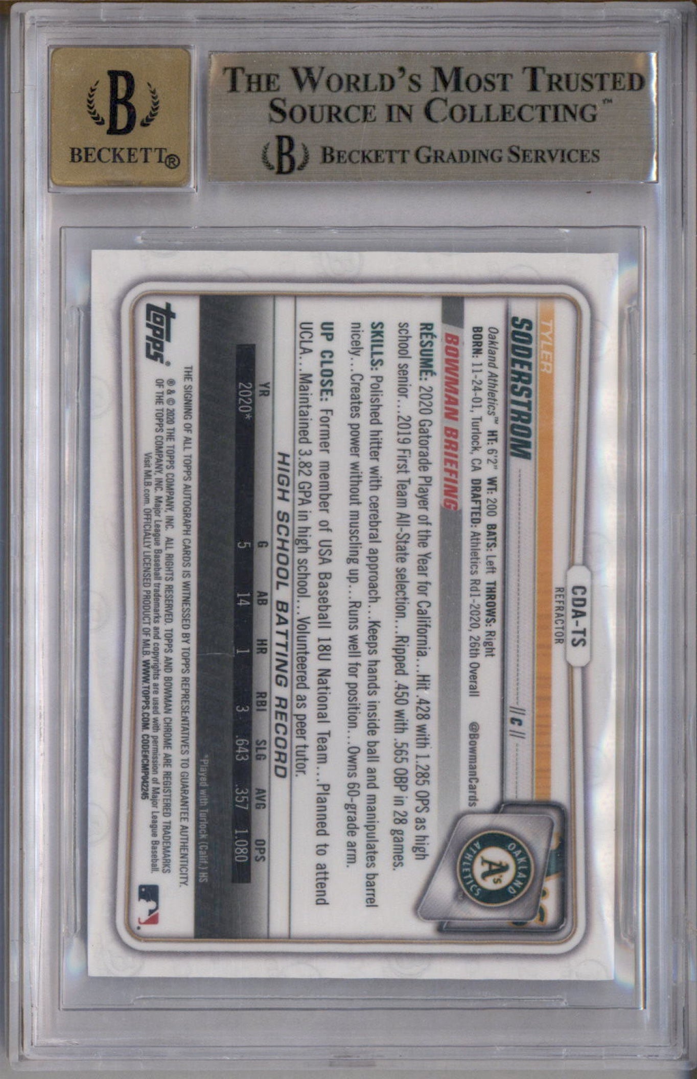 2020 Bowman Chrome Refractor #CDA-TS Tyler Soderstrom Auto /499 BGS 9.5