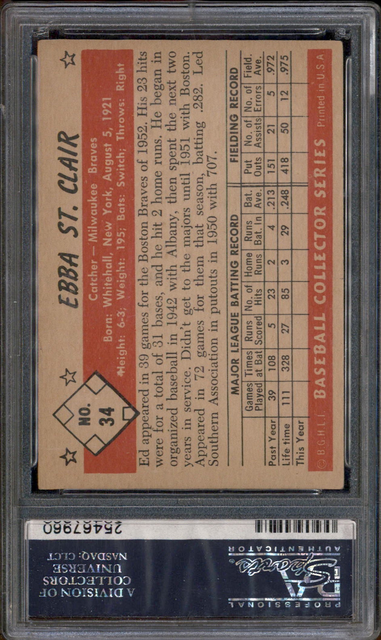 1953 Bowman Black & White #34 Ebba St. Claire PSA 4