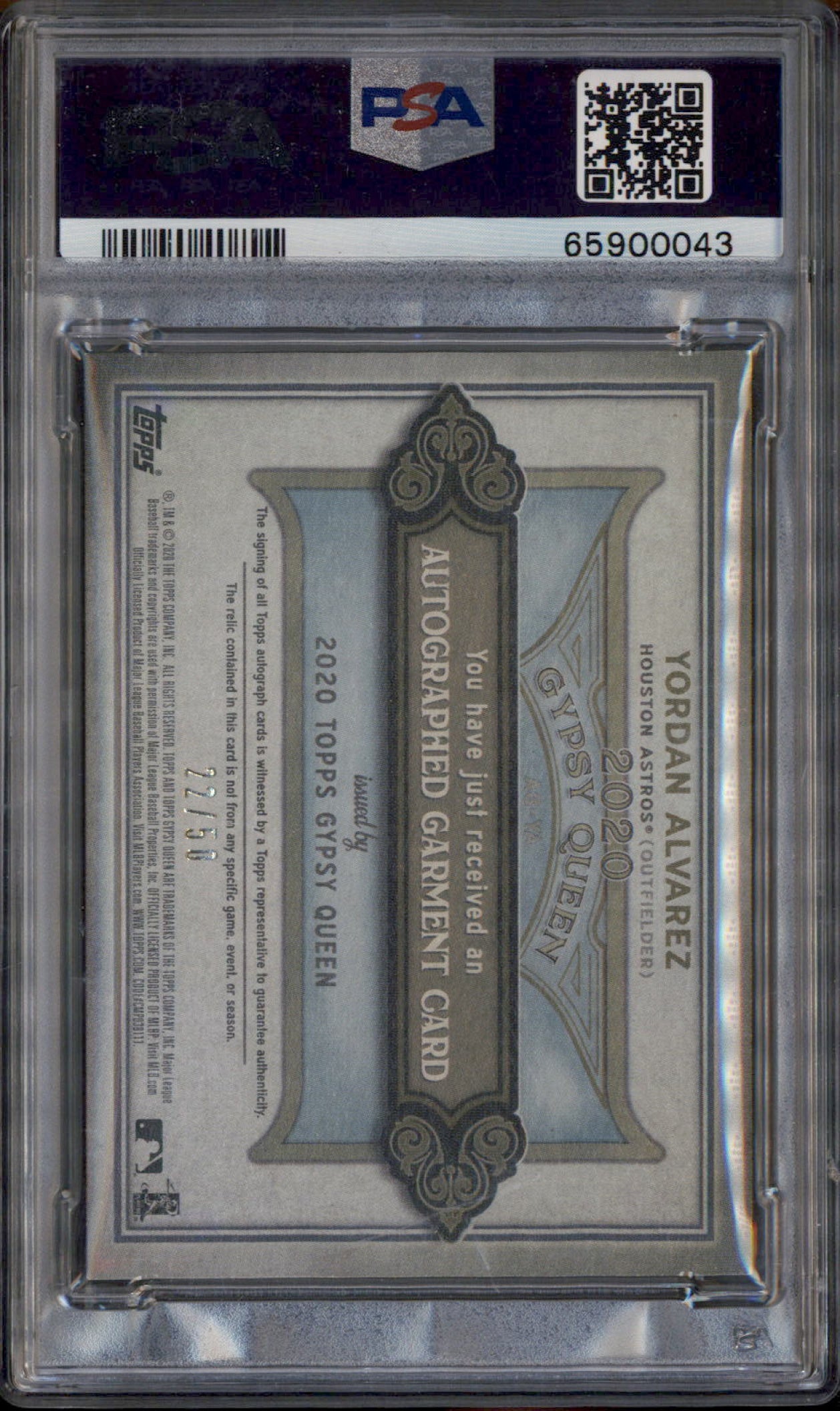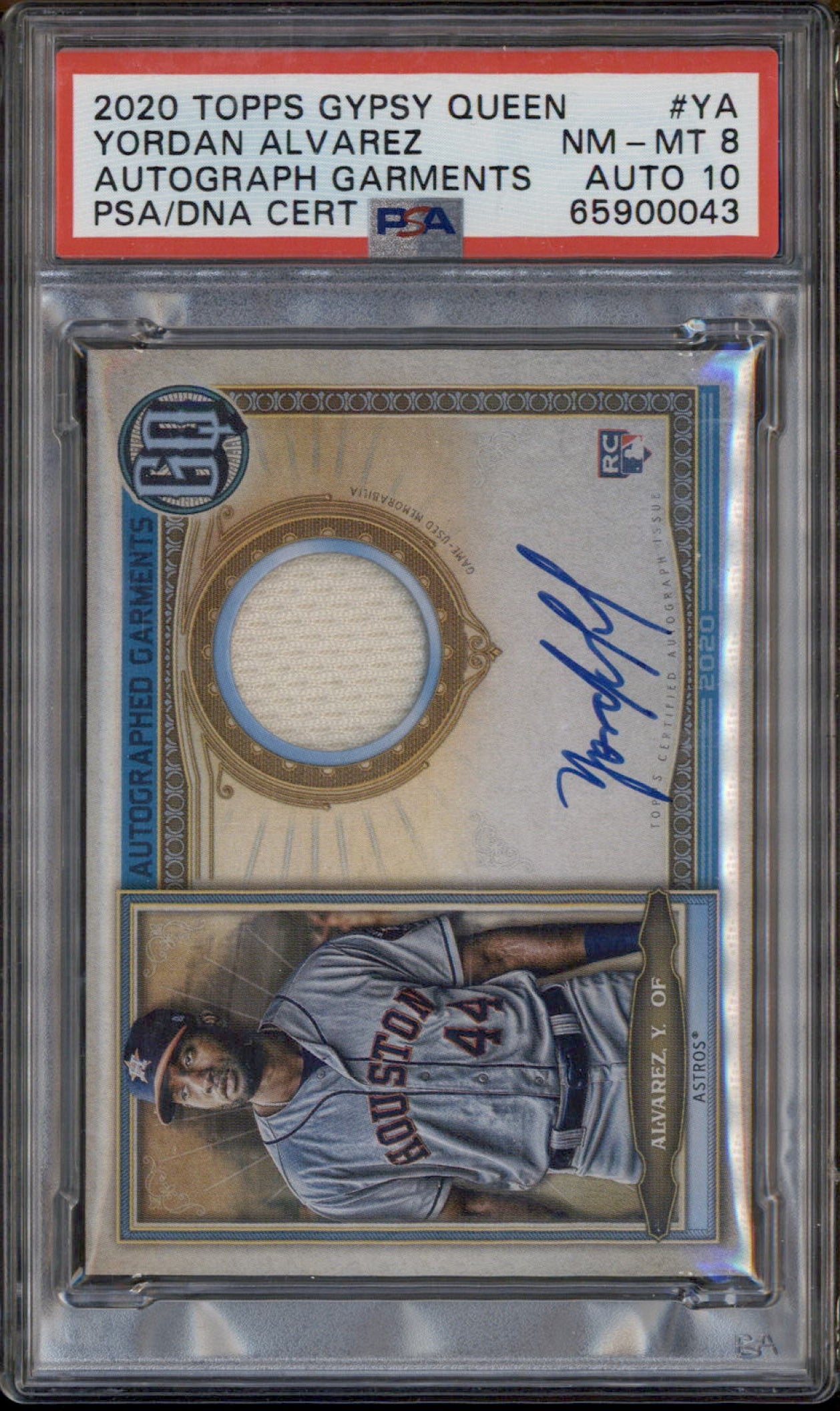 2020 Topps Gypsy Queen Autograph Garments #AGYA Yordan Alvarez RC Auto /50 PSA 8