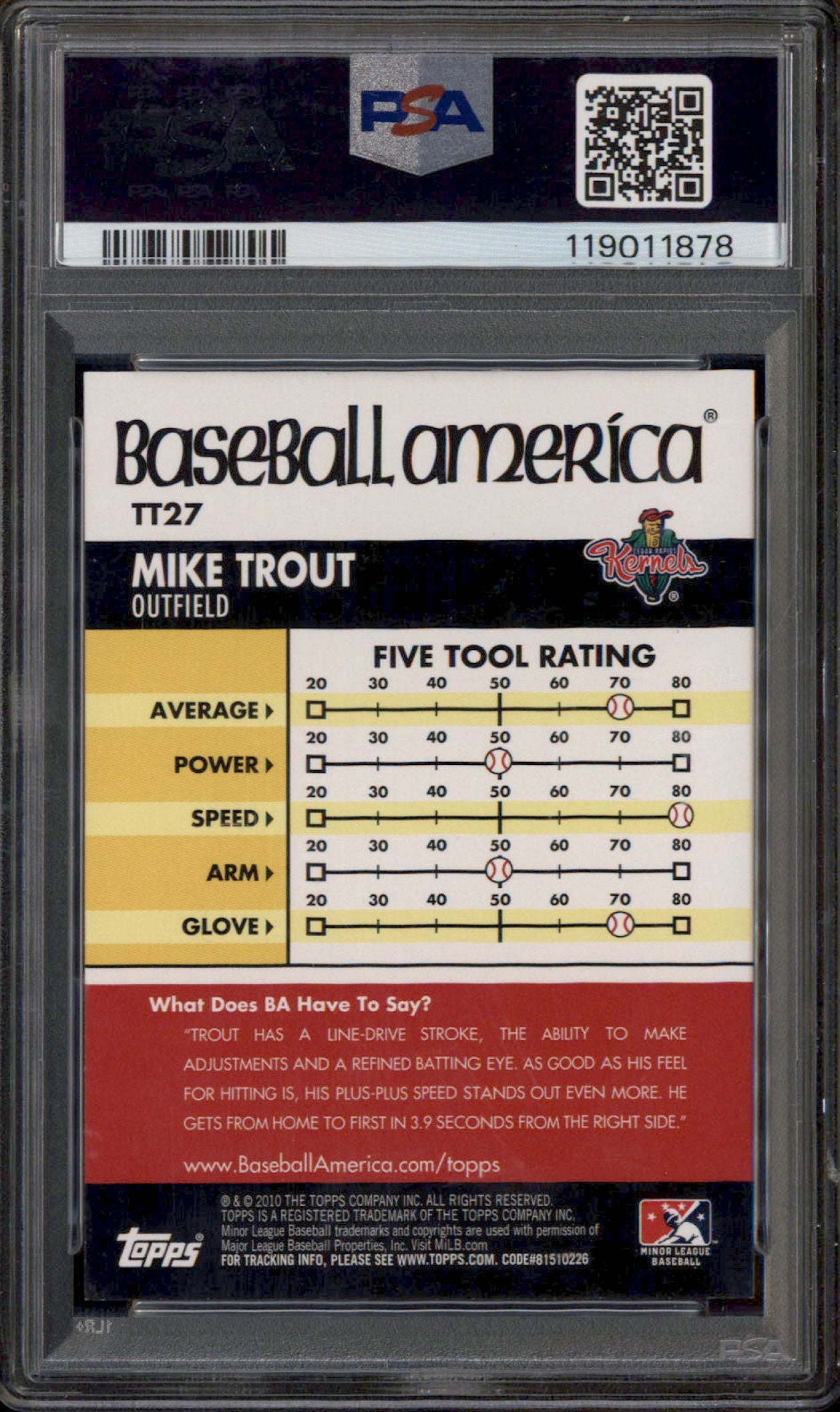 2010 Topps Pro Debut Baseball America Tools of the Trade #TT27 Mike Trout PSA 8