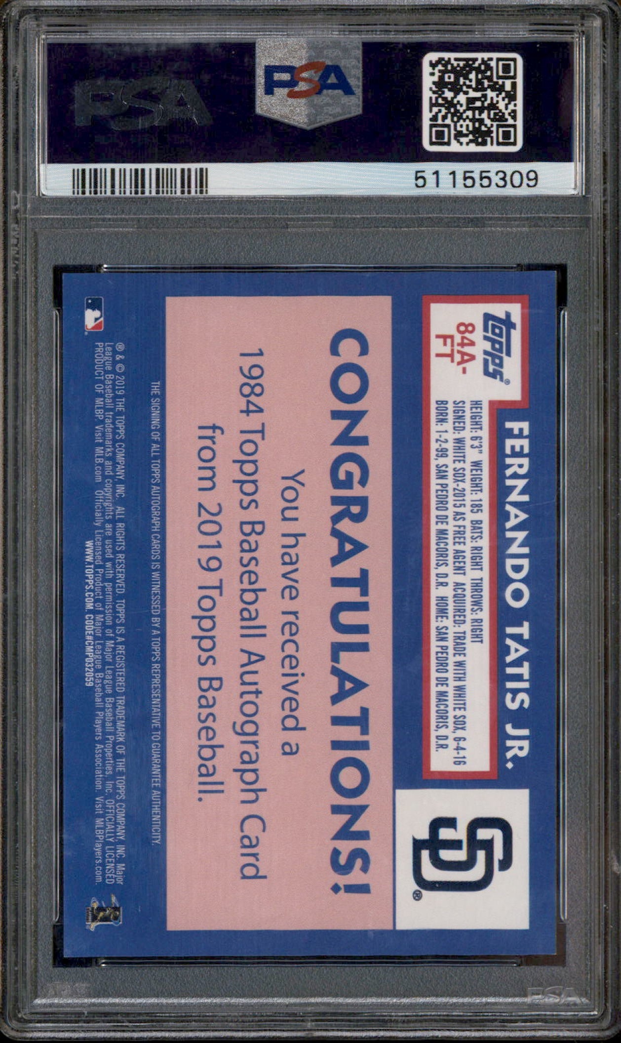 2019 Topps 1984 Baseball Autographs #84A-FT Fernando Tatis Jr. RC Auto PSA 9