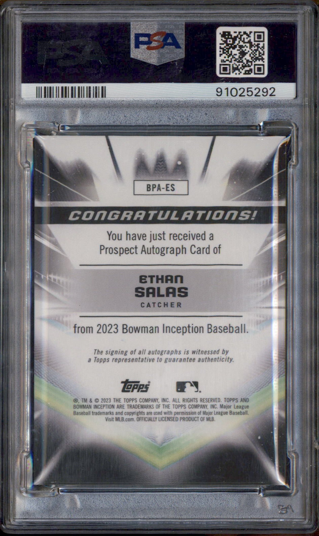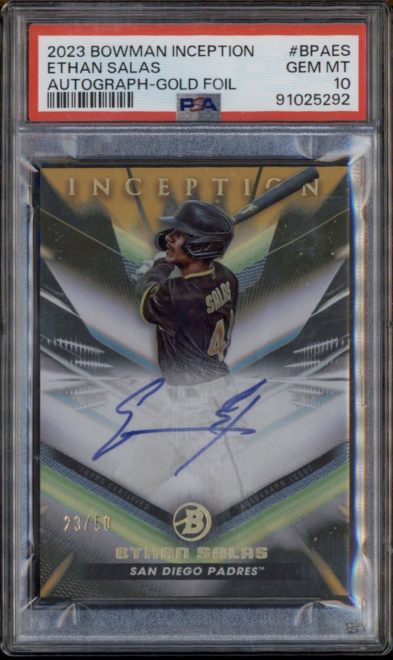2023 Bowman Inception Autograph Gold Foil #BPA-ES Ethan Salas RC Auto /50 PSA 10