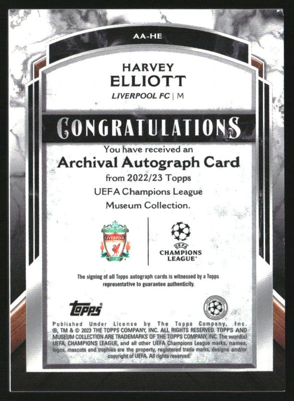 2022 Museum Collection UEFA Champions Archival Auto Gold Harvey Elliott /50