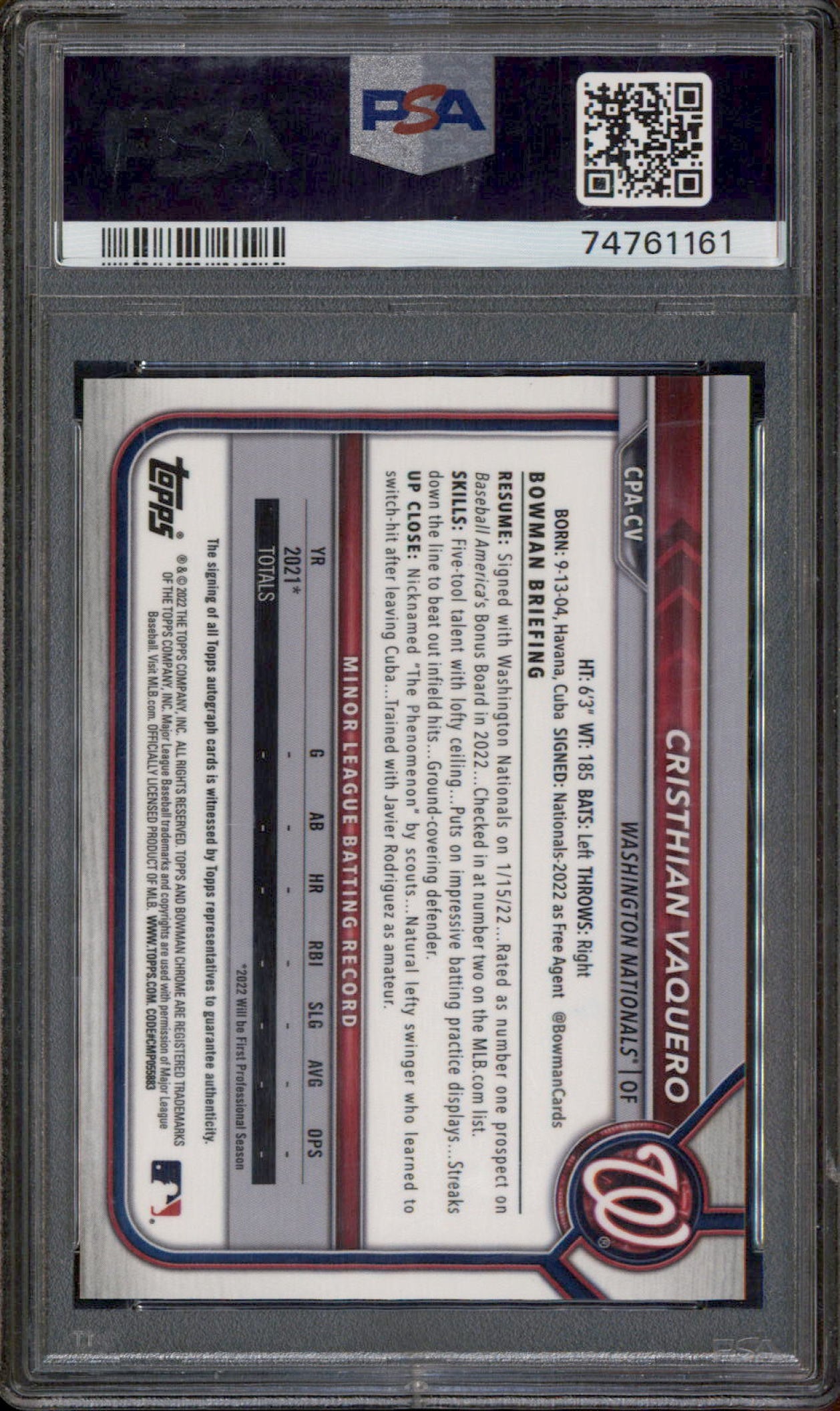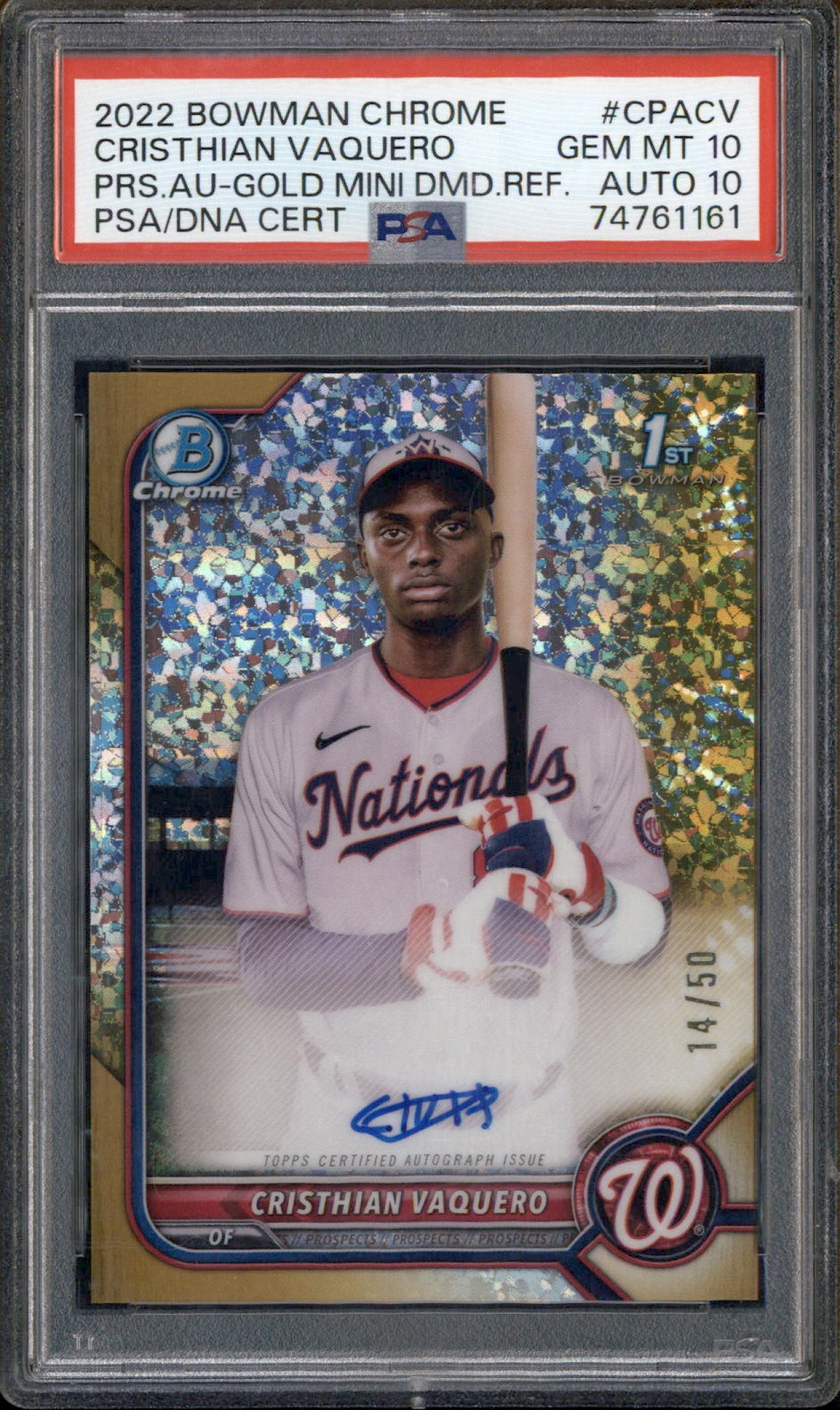 2022 Bowman Chrome Gold Mini Diamond #CPACV Cristhian Vaquero RC Auto /50 PSA 10