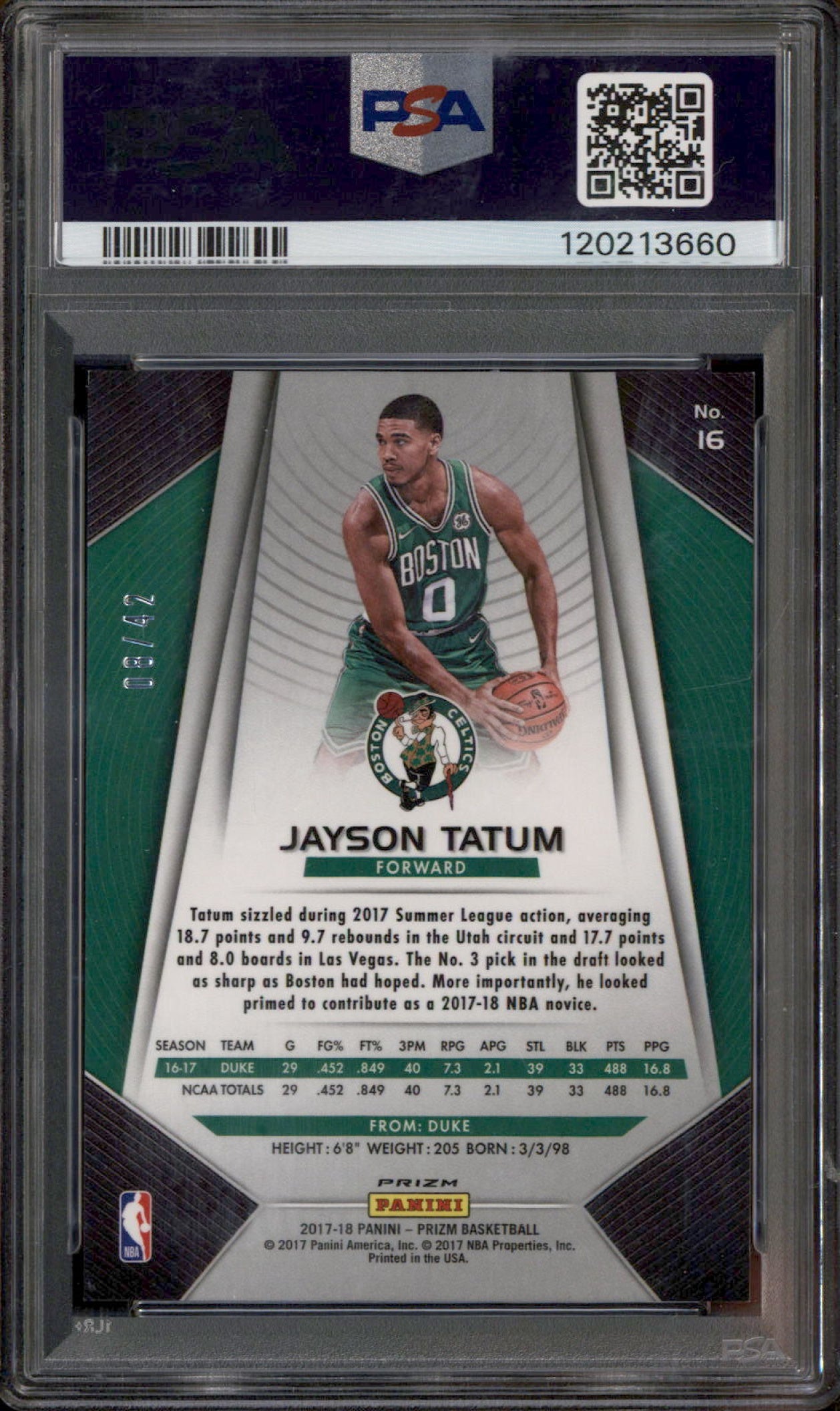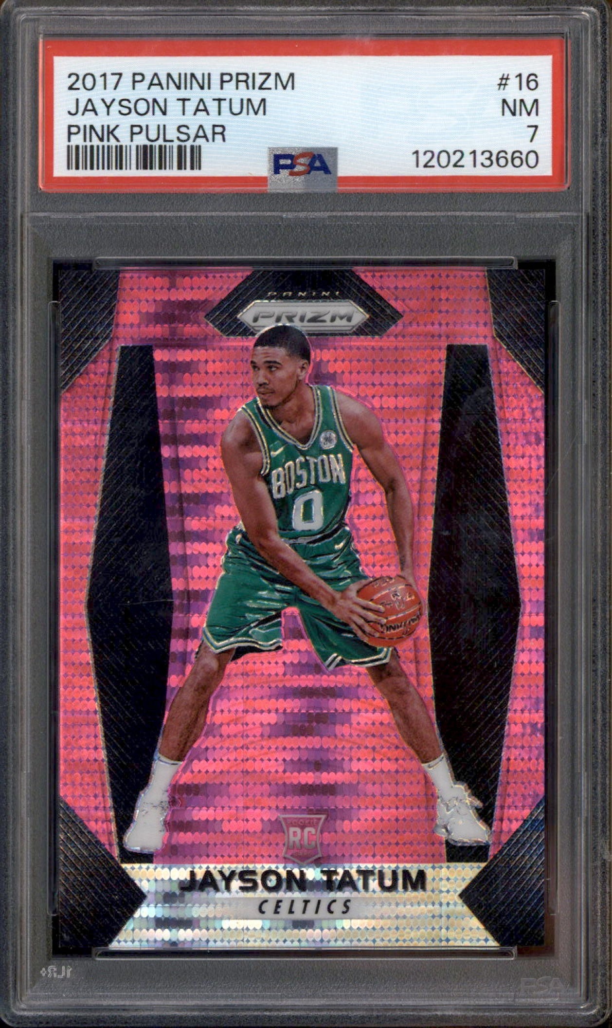 2017-18 Panini Prizm Prizms Pink Pulsar #16 Jayson Tatum RC /42 PSA 7