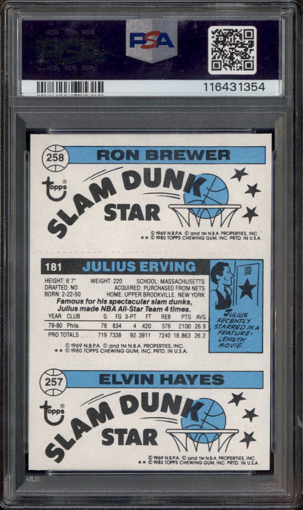 1980 Topps Elvin Hayes Julius Erving Ron Brewer PSA 9 (OC)