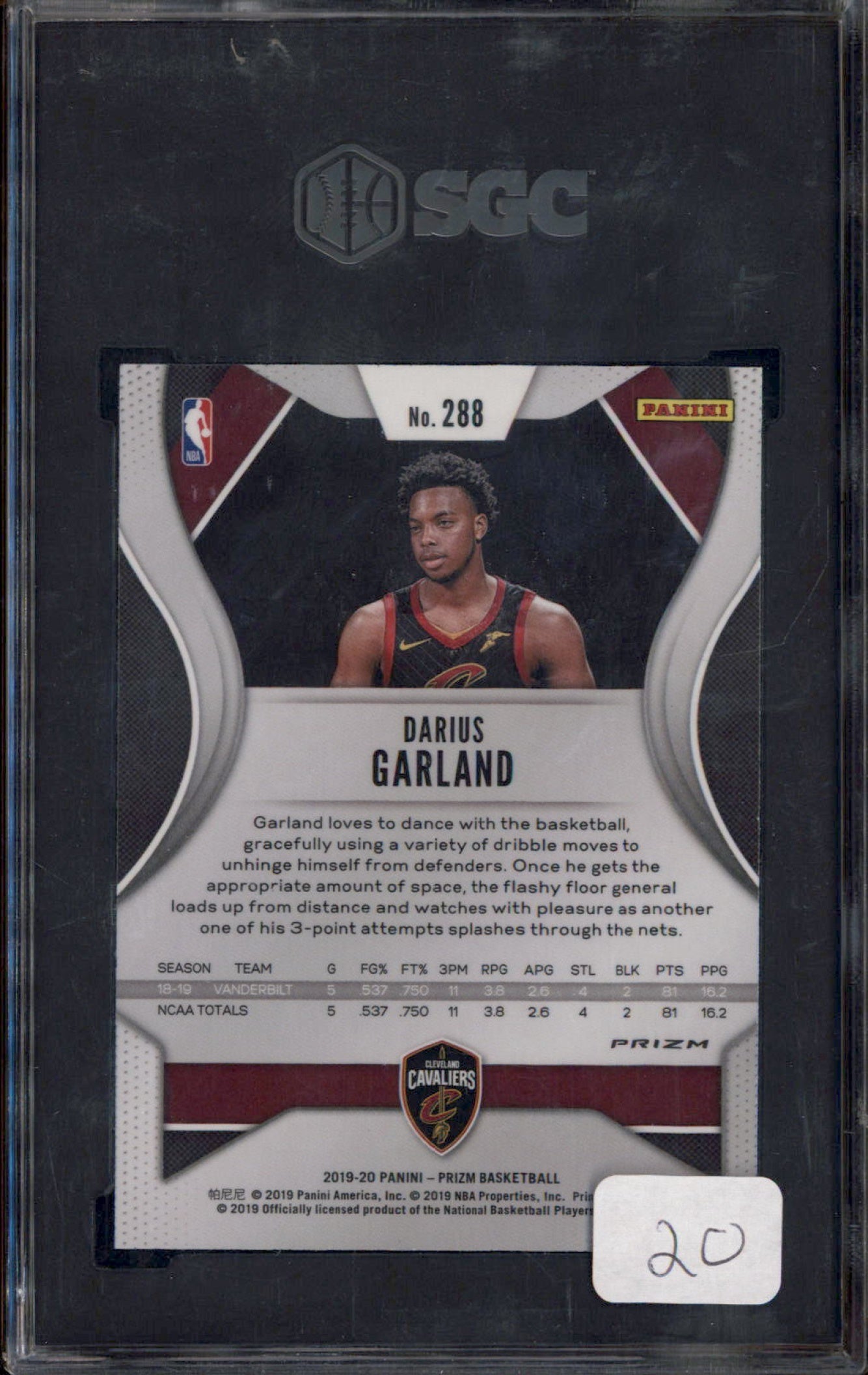 2019-20 Panini Prizm Prizms Pink Ice #288 Darius Garland RC SGC 9