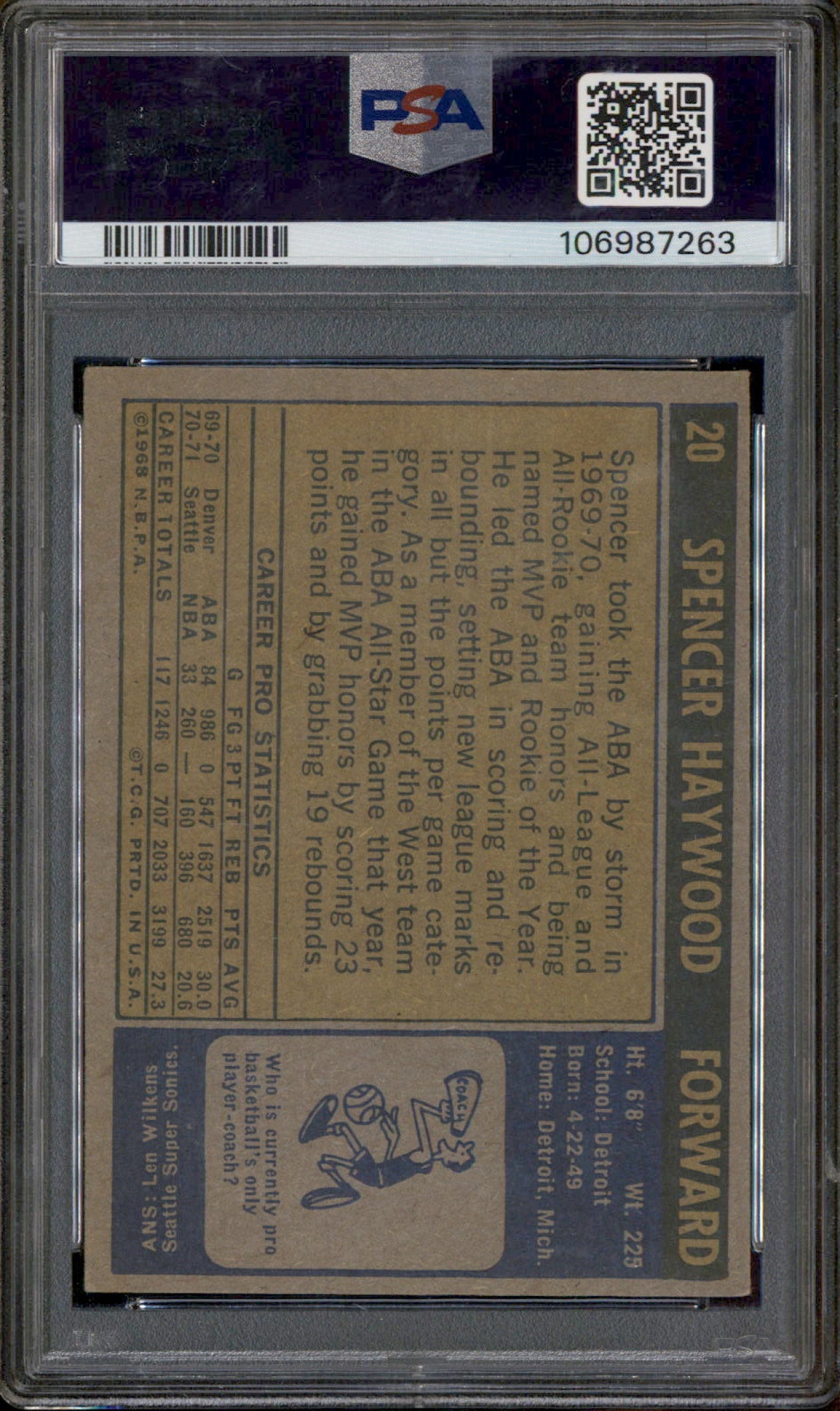 1971-72 Topps #20 Spencer Haywood RC PSA 5